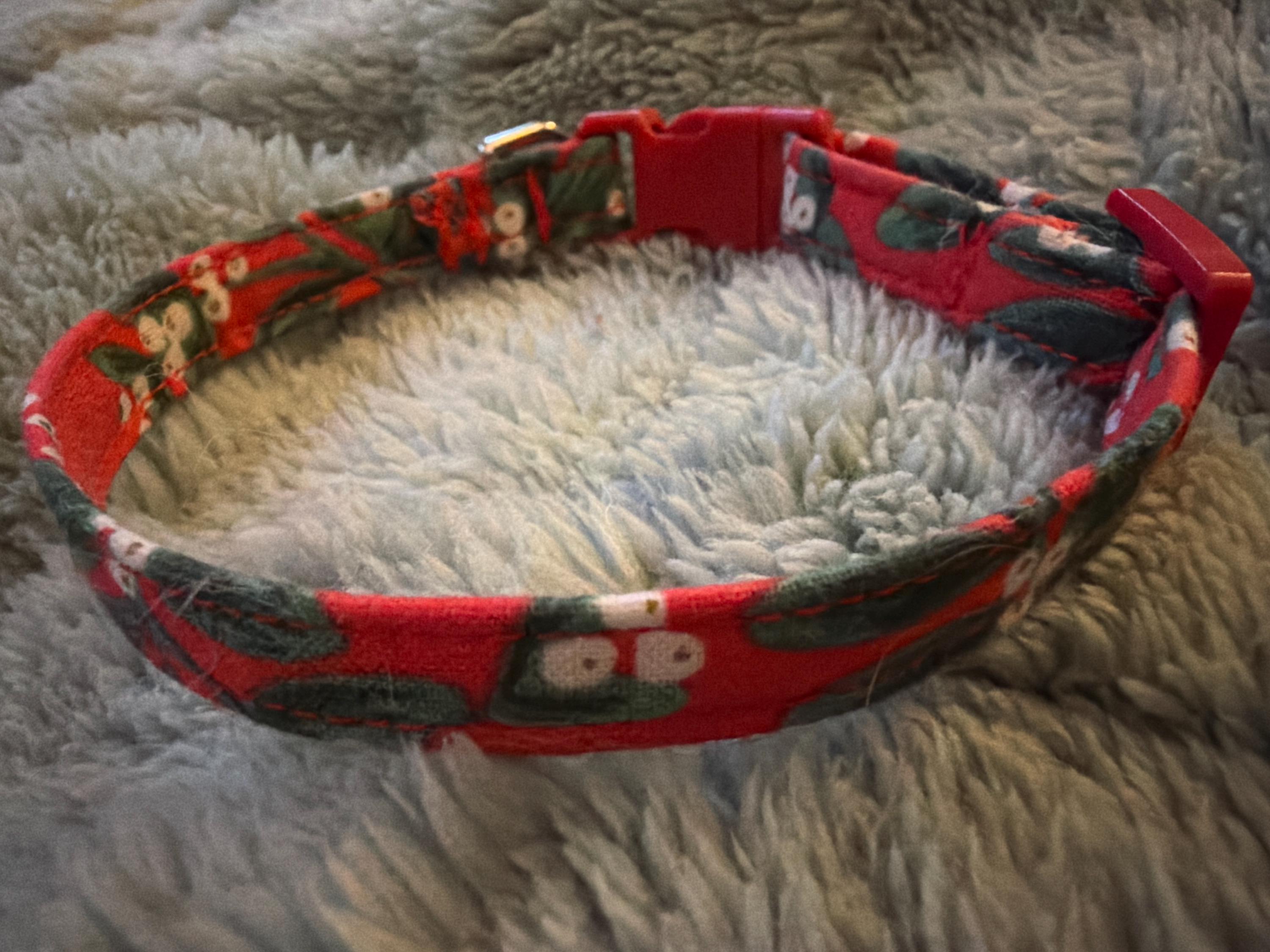 A solid brass d-ring also looks very festive with this print. Solid brass d-rings are available in 5/8", 3/4" and 1" widths. Here is the listing to add to your shopping cart if you would like to upgrade to a sold brass d-ring: https://www.etsy.com/listing/1592326037/upgrade-buy-with-dog-collar-put-a-solid?click_key=b8356cb9013b44a86d3d6fa7b68008f389fcc655%3A1592326037&click_sum=f0ea1c7a&ga_search_query=solid&ref=shop_items_search_43&sts=1