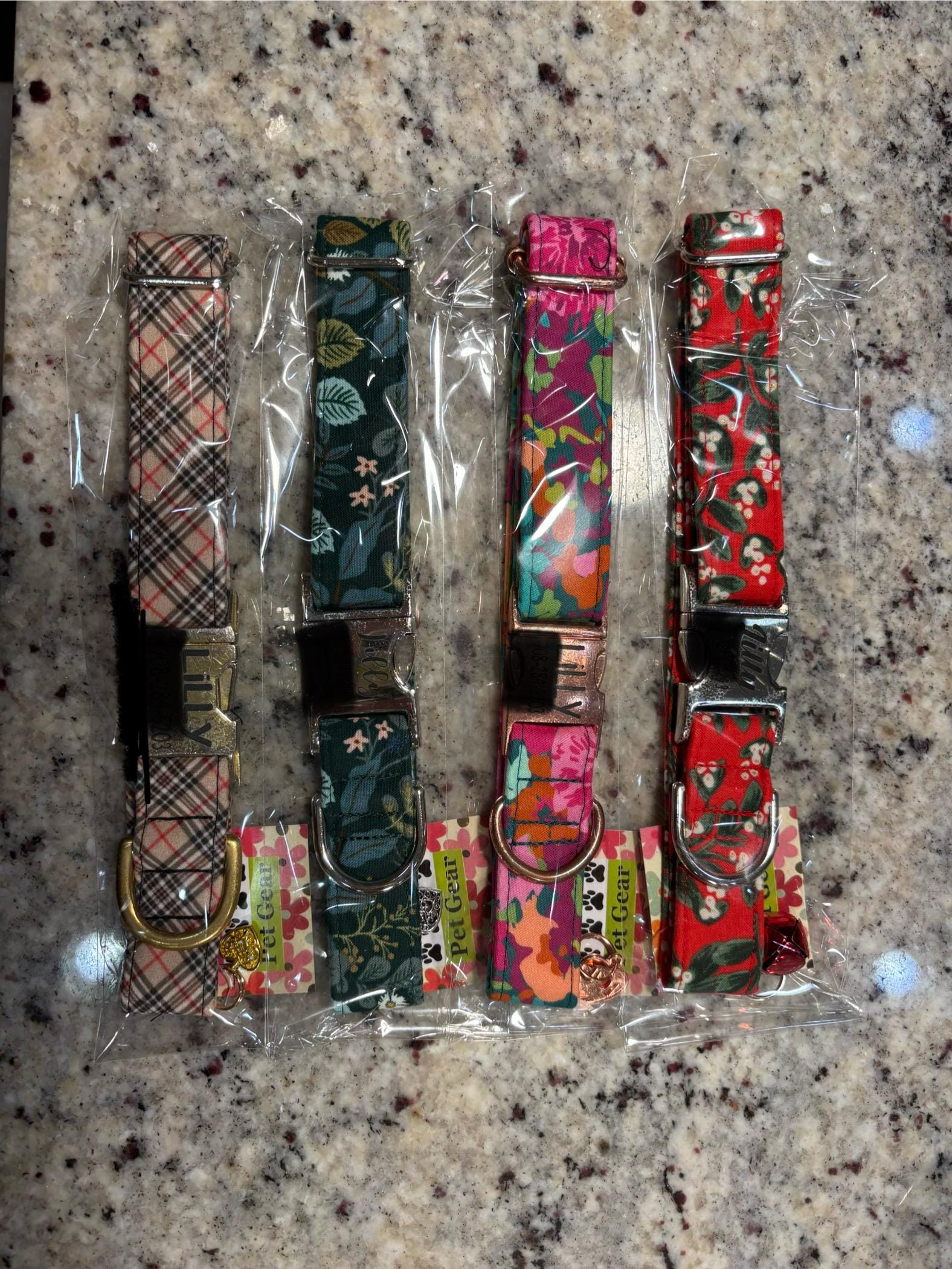 -My items are custom made-to-order. which means I do not have a premade supply of items. I handmake each order myself after receiving the order and include your choice of fabric, collar size and buckle type (plastic, metal or engraved) and buckle color (for plastic buckles).