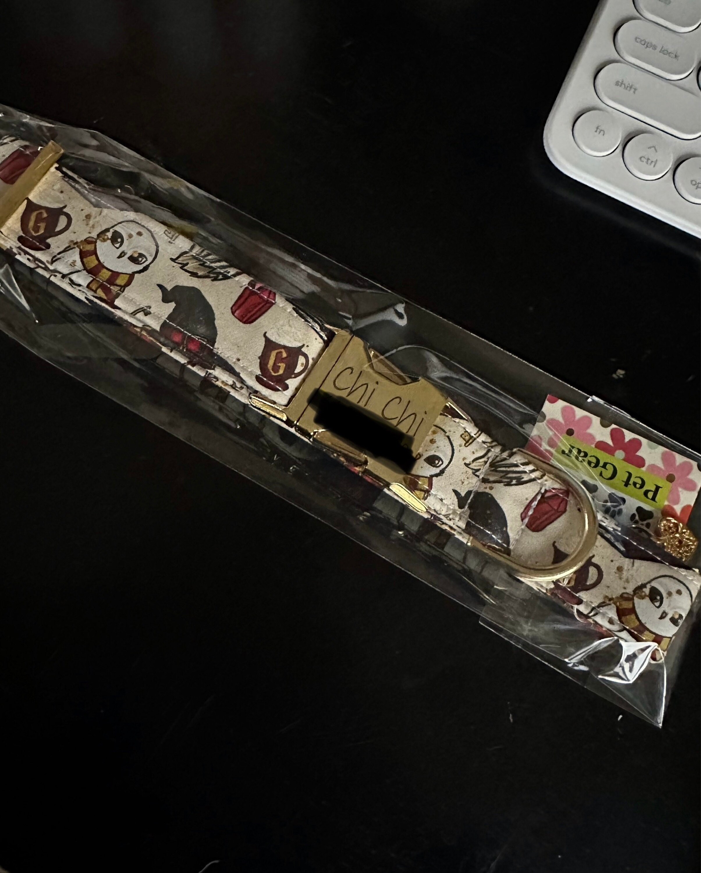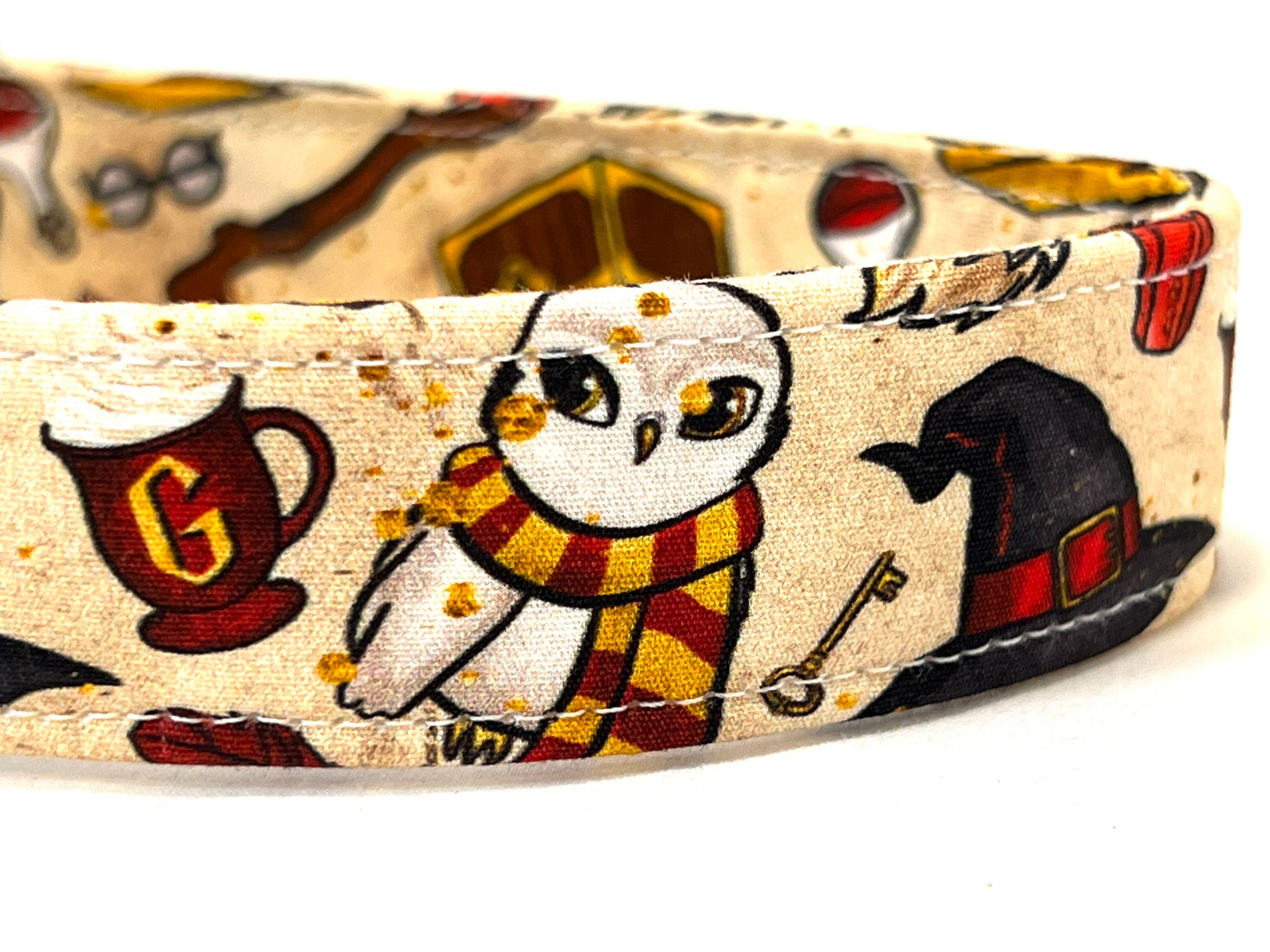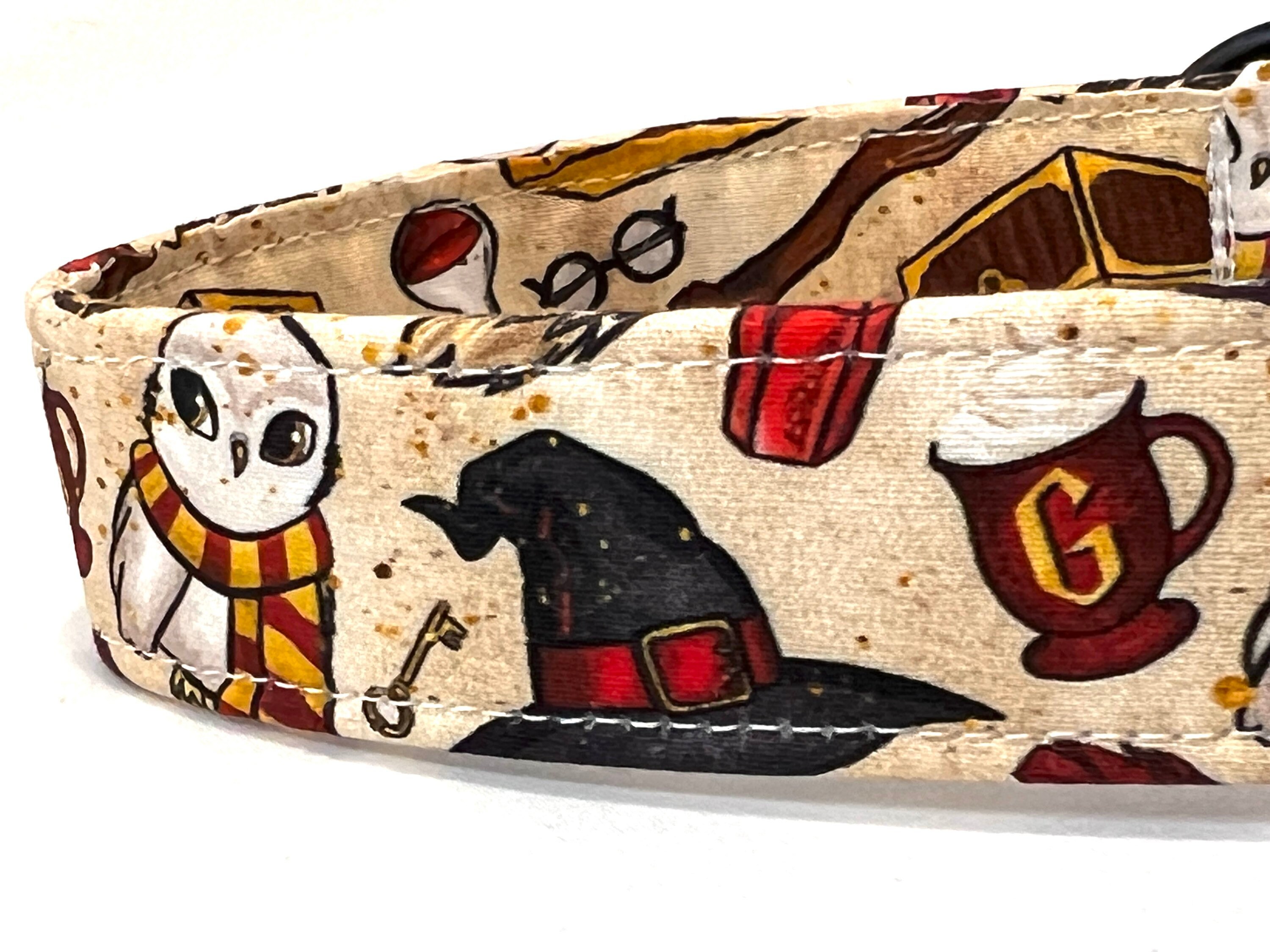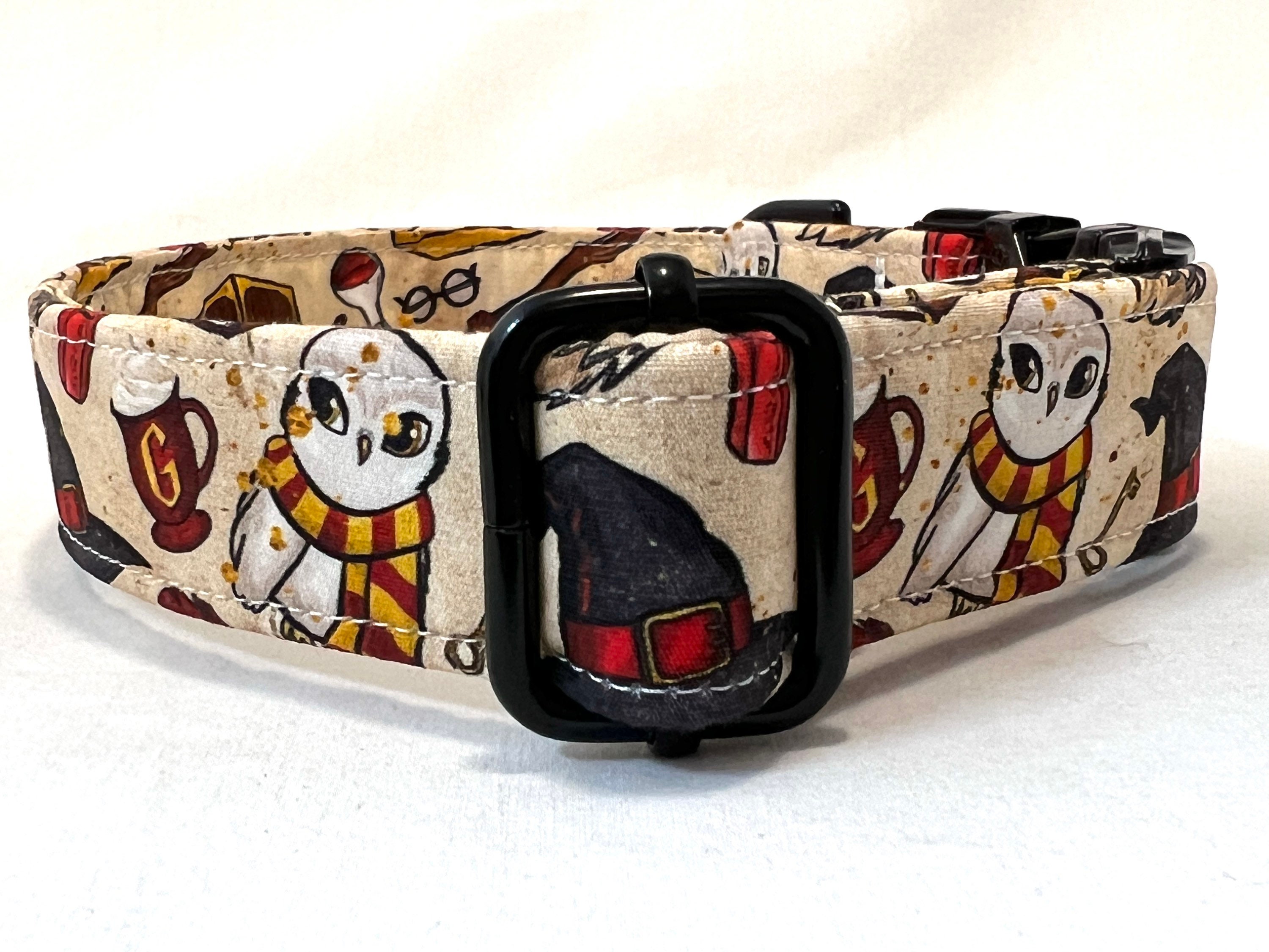 This is the perfect dog collar for those who love wizards and magic! This collar features a personalized laser engraved buckle and would be good for a girl or boy dog.
