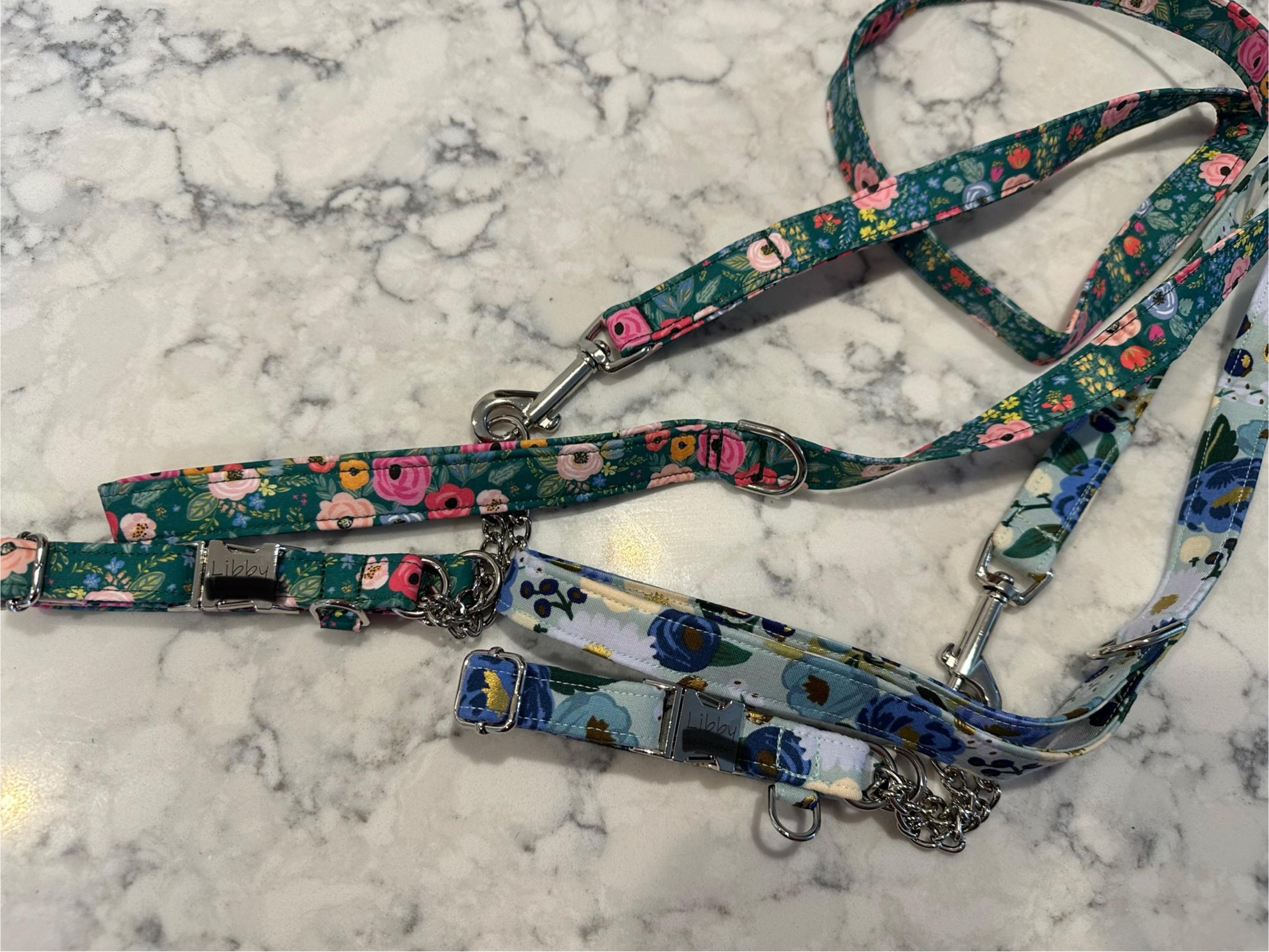 Pick any dog collar fabric from my shop I will make you a martingale dog collar using that fabric. Just look through the dog collars in my shop and pick the fabric you like best. Be sure to mention the name of the fabric in the note to seller section of your order. The fabric in the martingale photos in this listing is Rifle Paper Co Pink Wildflowers.