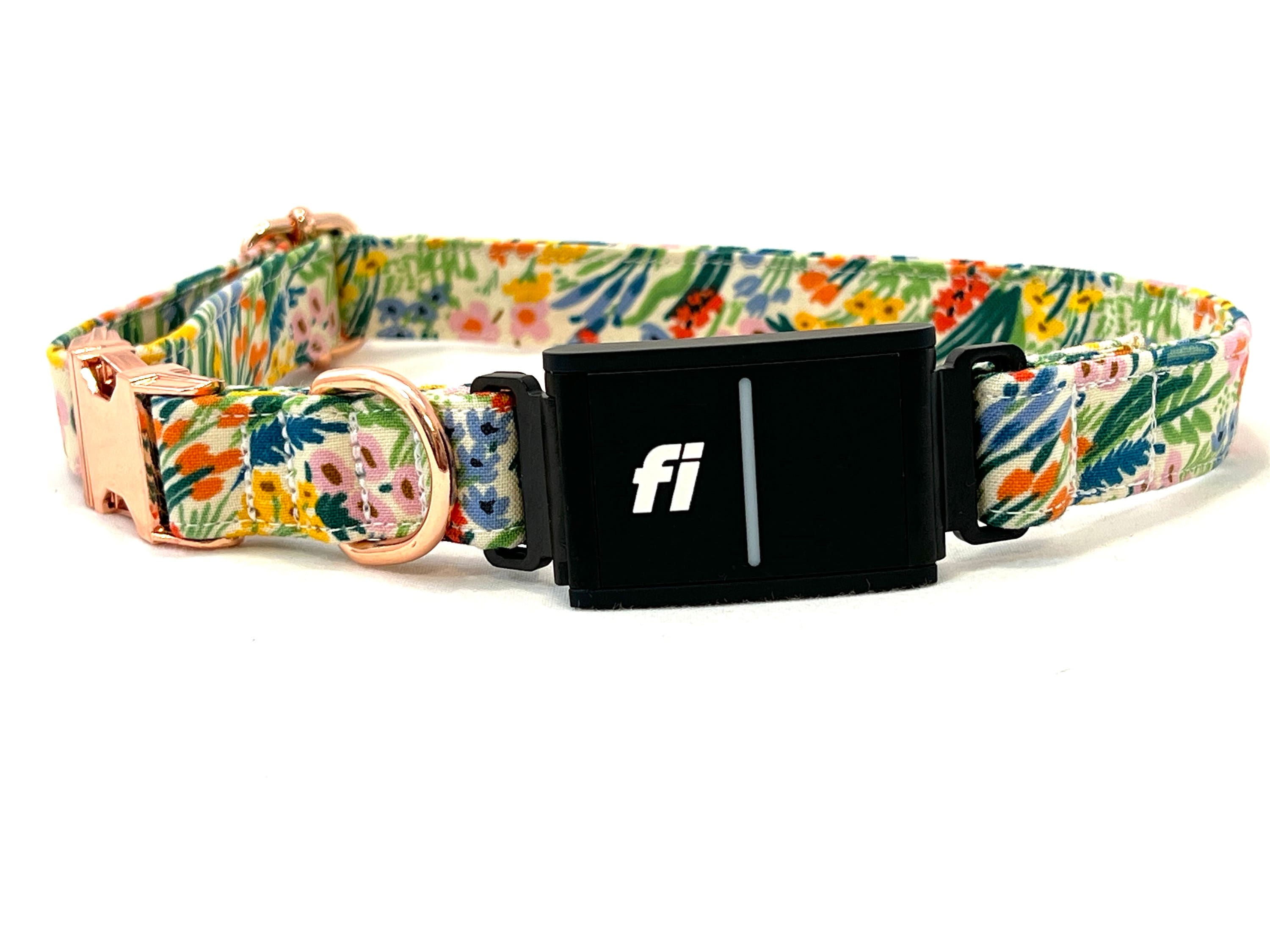 Now your dog can be stylish and safe with a collar made with Fi Series 3 compatible connectors that allow you to connect and remove your Fi Series 3 GPS module to the collar.