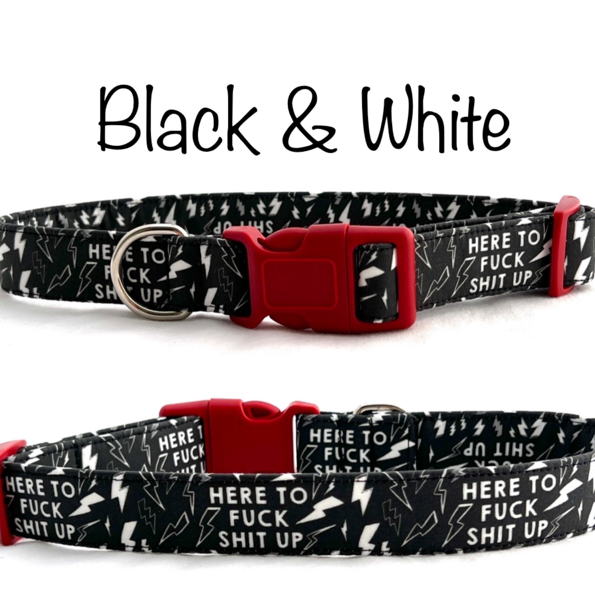 This is the perfect gift for a new dog or puppy! Is your dog a troublemaker? Then this is the perfect collar! Don’t fight it… lean into your dog’s naughtiness and mischievous personality with this charming profanity-laced collar!
