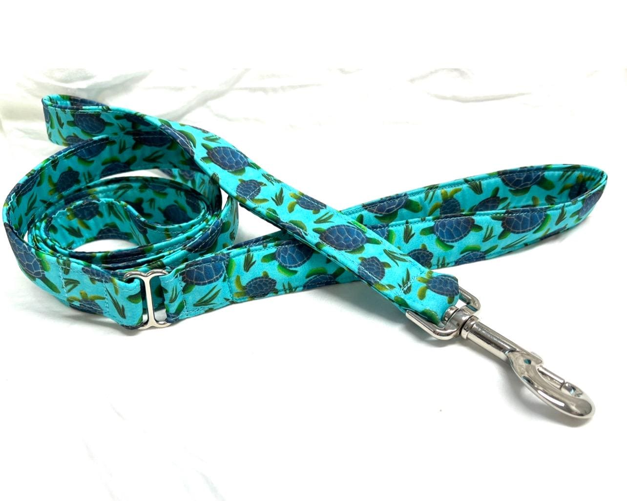 Here in Florida we love our sea turtles! Now your pup can wear this fun tropical look at home! This cute leash features adorable sea turtles swimming on an aqua background.
