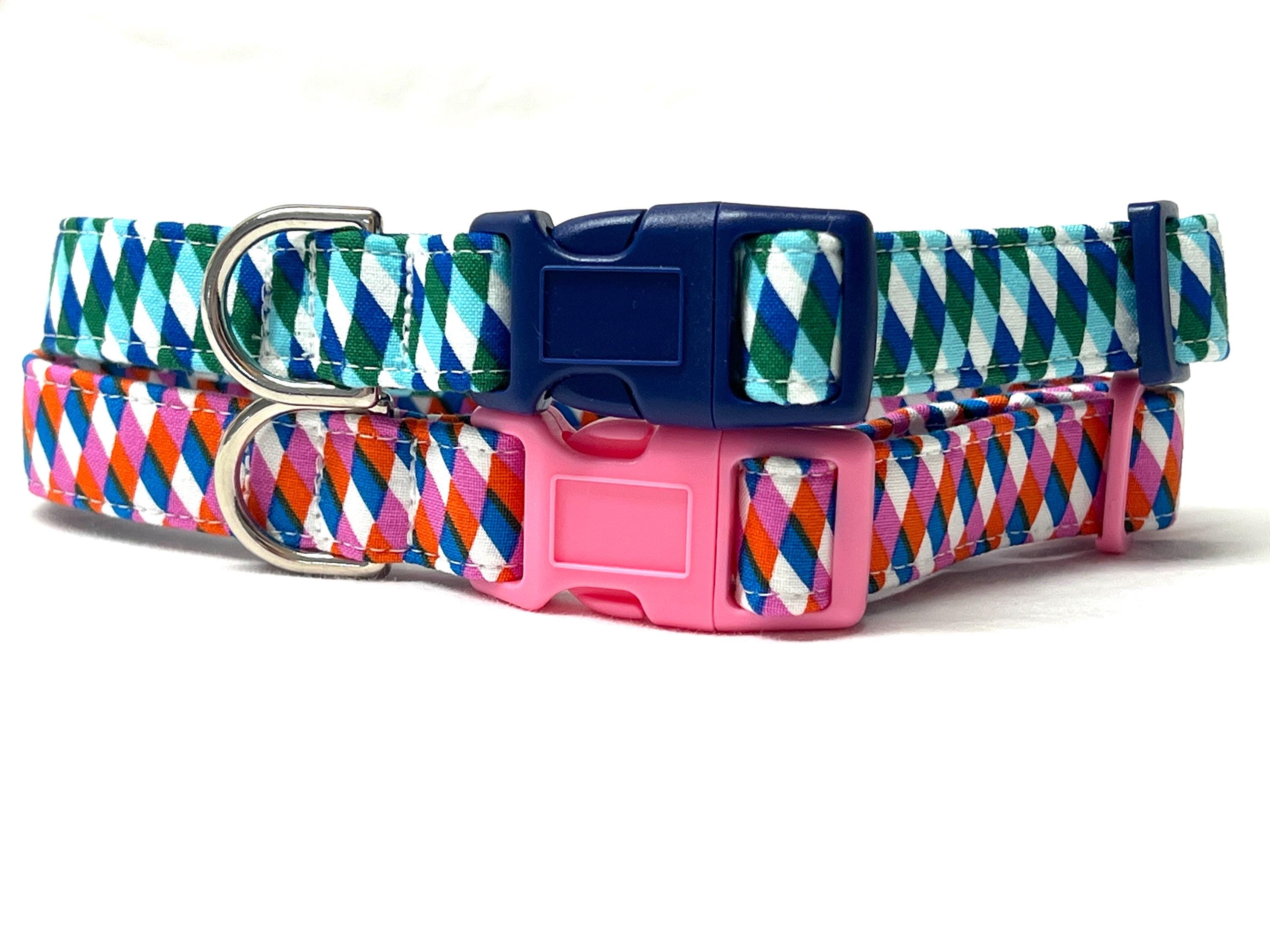 Your pup will be the envy of the other pups at the dog park with a stylish Harlequin Checks dog collar.