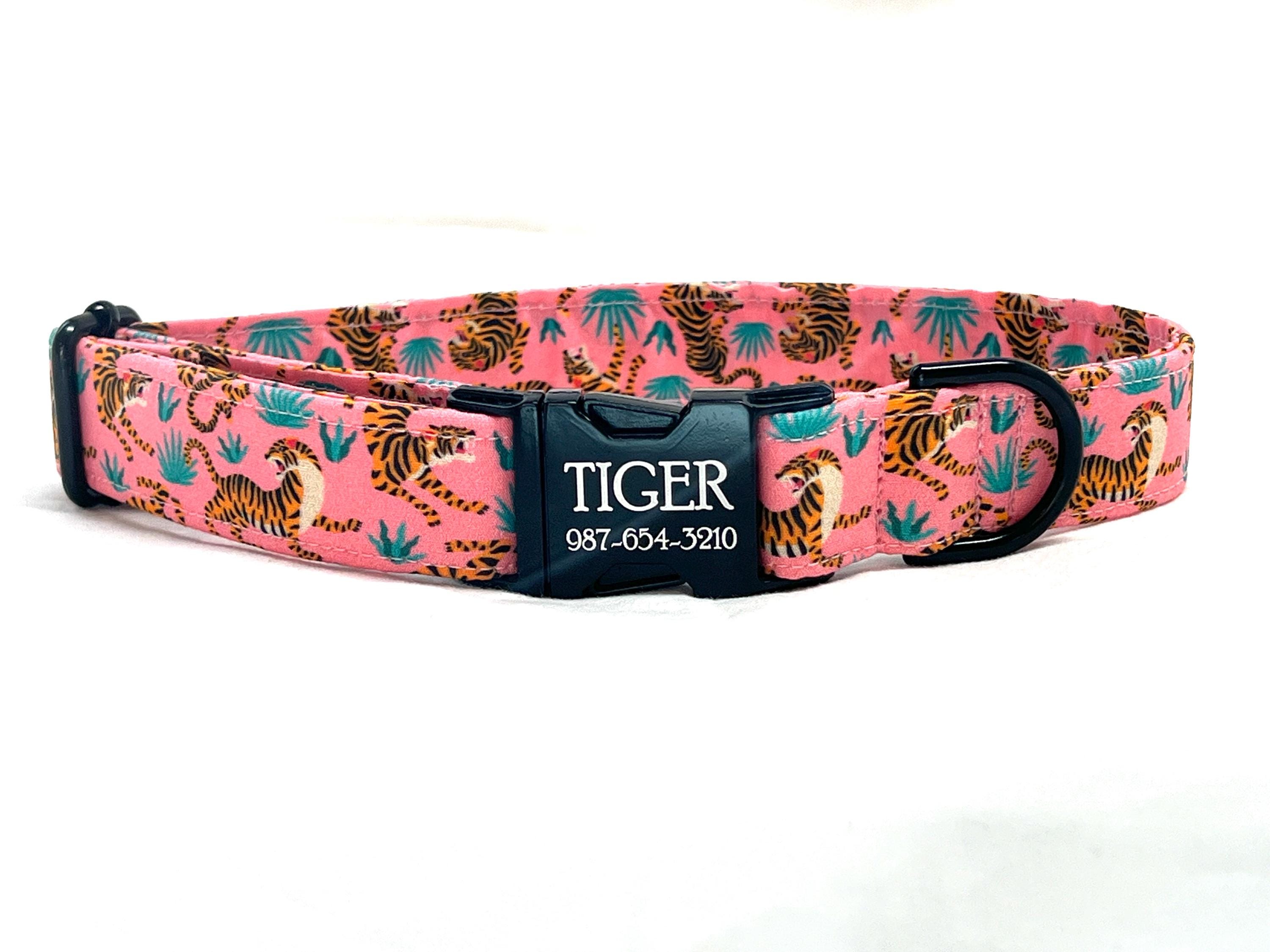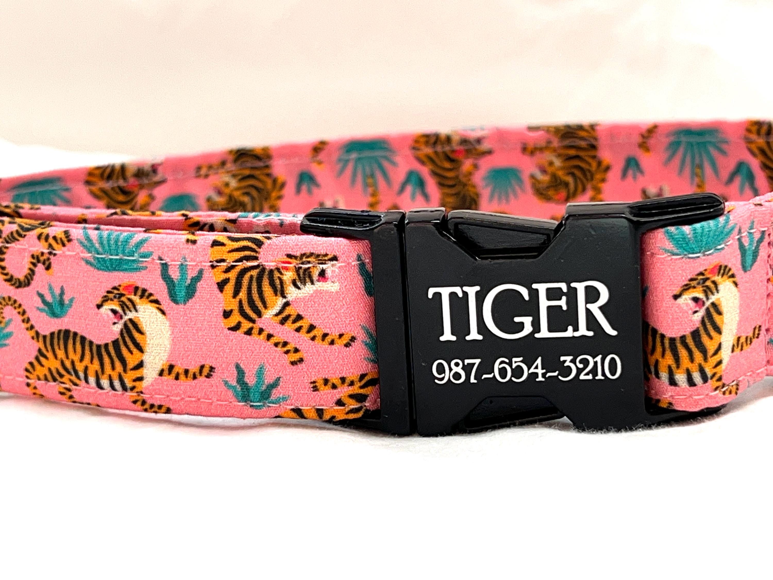 Fierce Tigers! Your girl or boy dog will be the most stylish in your neighborhood with this head-turning collar that features tigers fighting and a personalized laser engraved buckle!