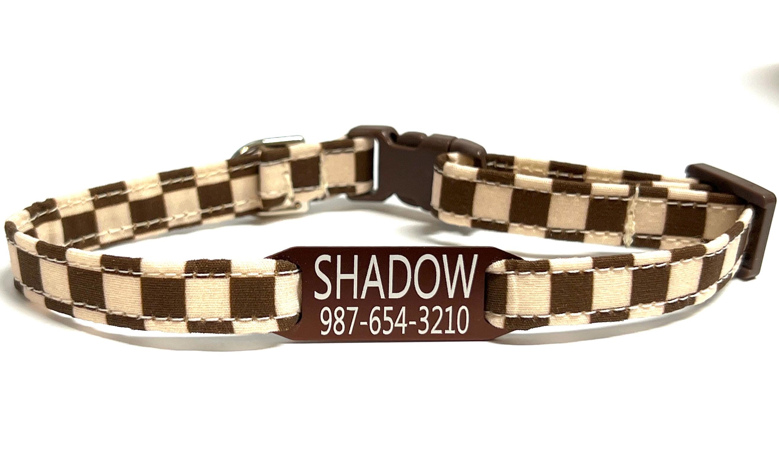 You won't hear any more dangling ID tags clanking against a food bowl with this slide-on personalized metal ID tag! This is also a great option for kitties who lose their ID tags or do not like things dangling from their collar.