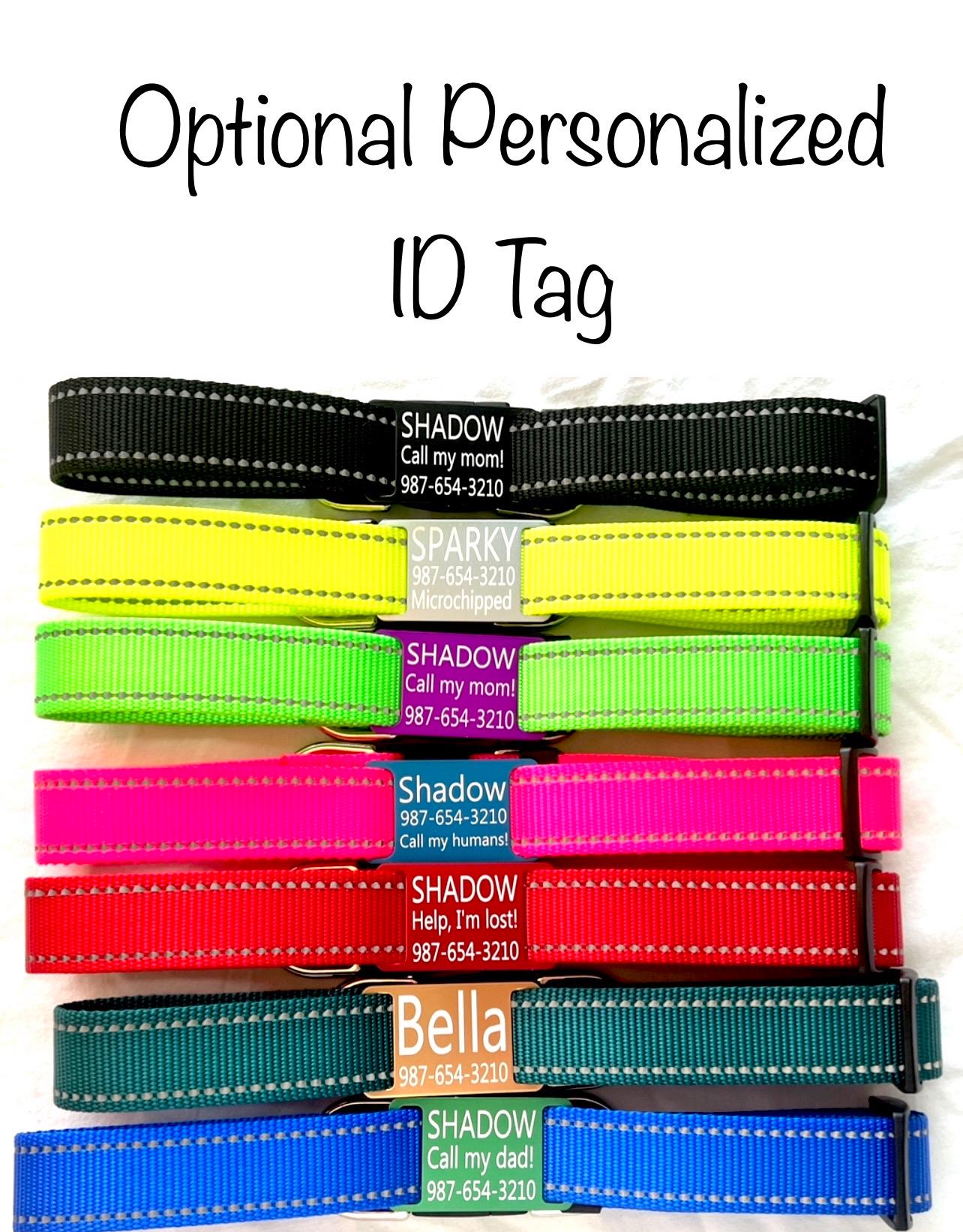 Pick from 7 reflective nylon webbing colors to create the perfect custom look for your pup. You also have the option to add a personalized engraved ID tag (12 colors to choose from).