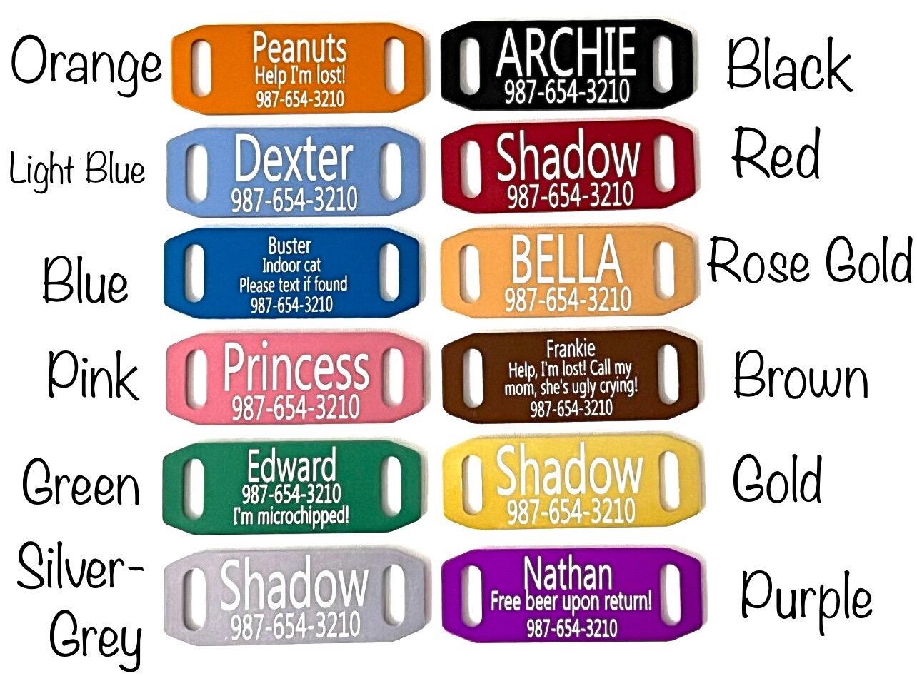 If you ordered a collar with an ID tag, please include the following info in the "personalization section" of your order. Please be sure to check spelling & punctuation. Orders can not be changed once they are placed.