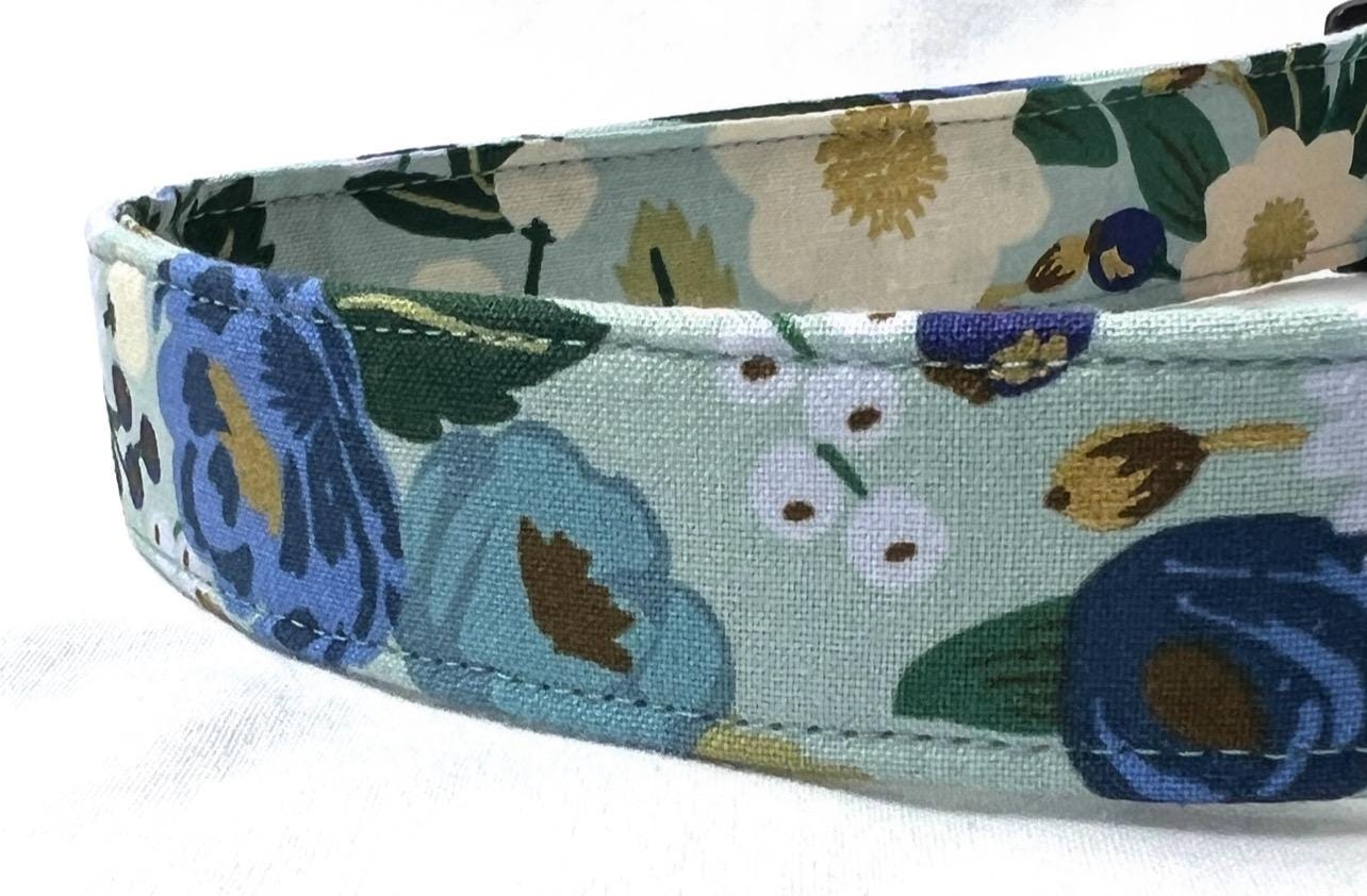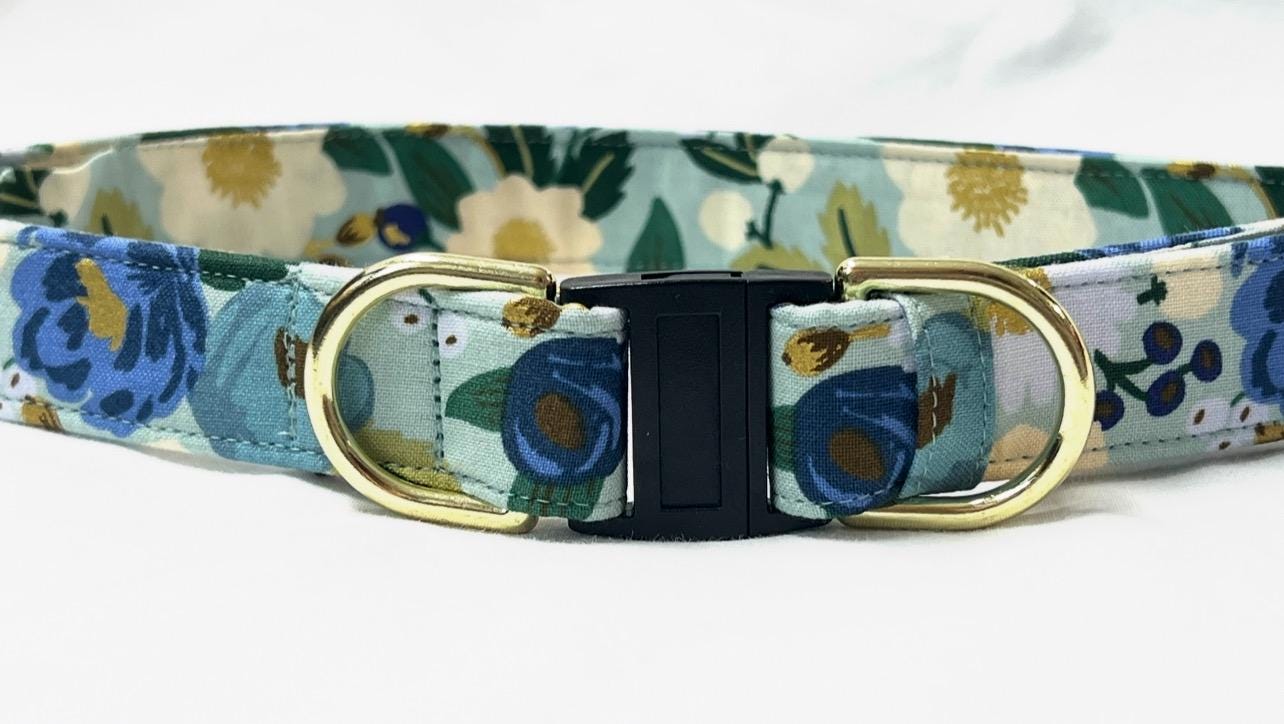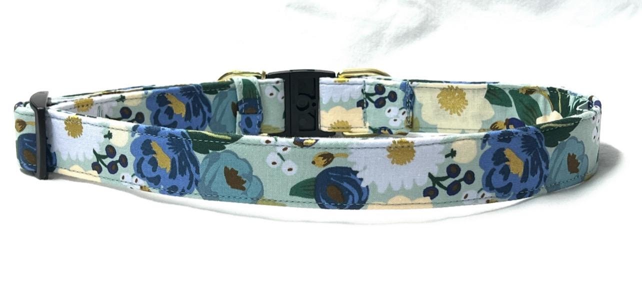 Now your dog can stay safe and be stylish at the same time with a colorful breakaway dog collar made with Rifle Paper Co. mint Vintage Garden fabric. This print is perfect for boy or girl dogs.!