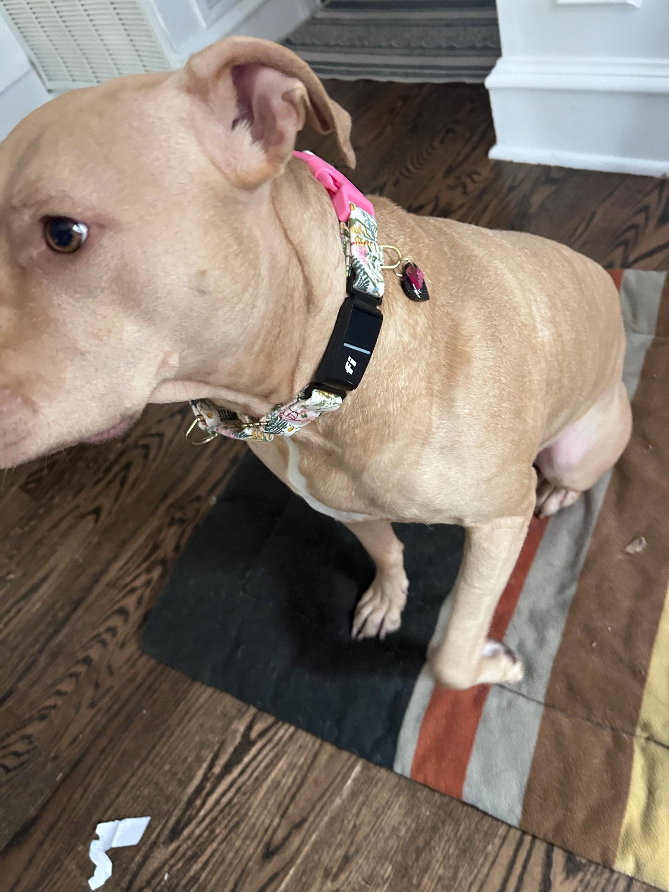 Pick any dog collar fabric from my shop I will make you a buckle martingale dog collar using that fabric. The martingale will have the buckle on the side of the collar instead of attached to the loop. You get to pick the fabric and the buckle color! (The fabric shown in the example photo is “Pink Wildflower”)