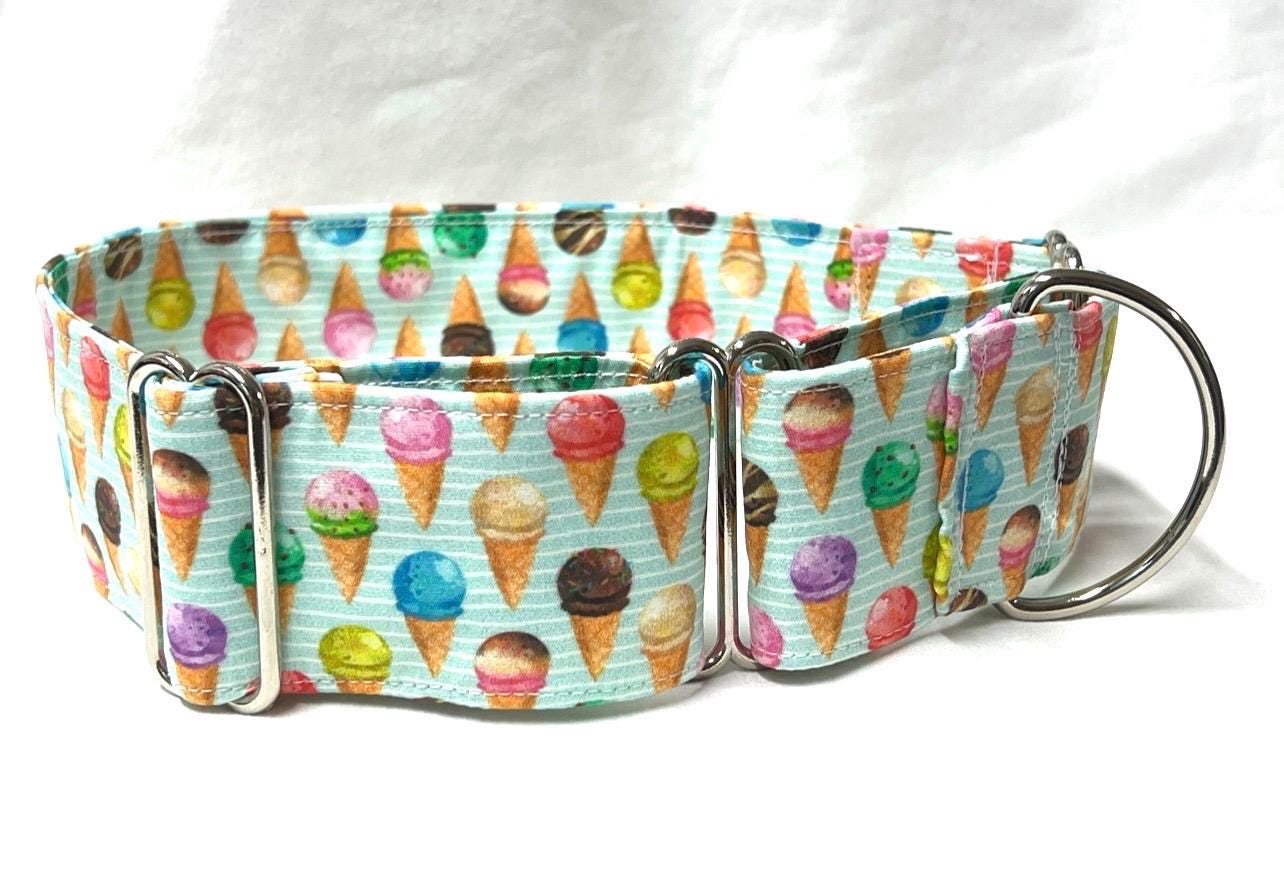 So adorable! Your pup will be so stylish wearing this charming martingale dog collar featuring ice cream and frozen treats!