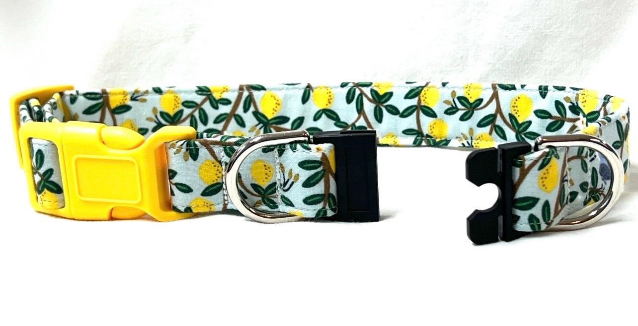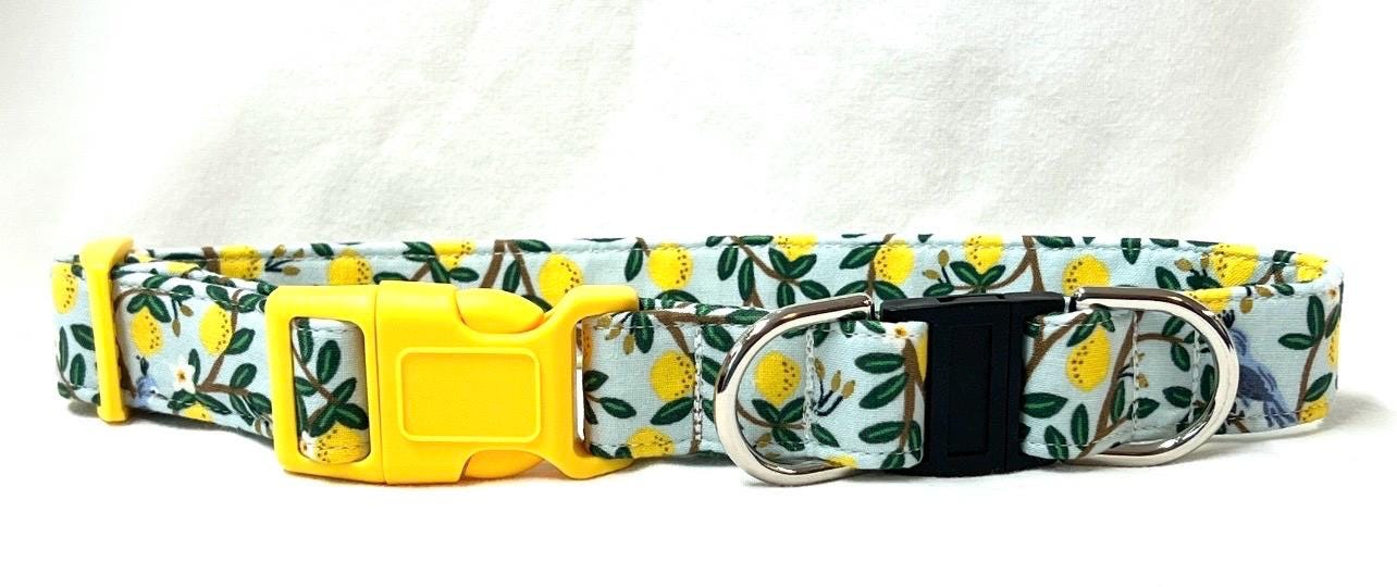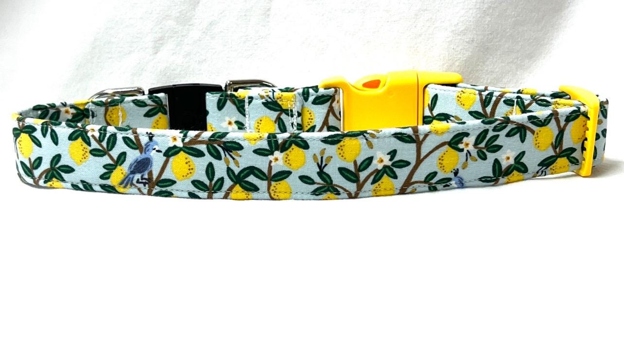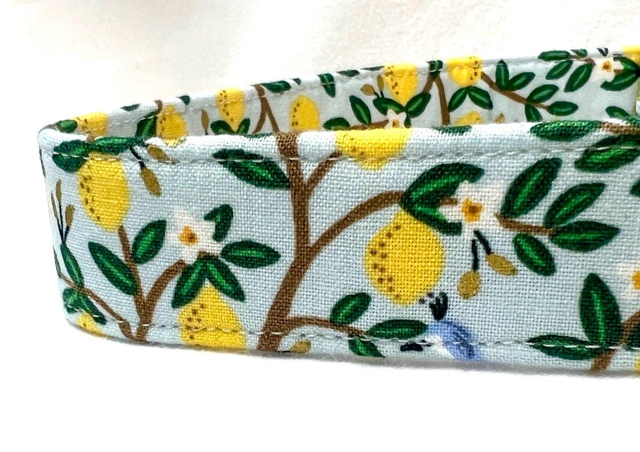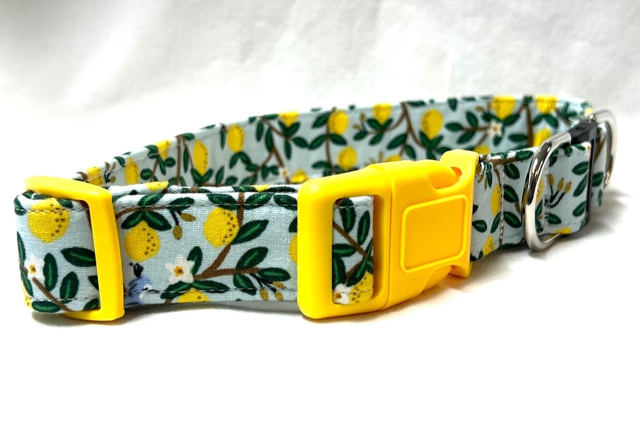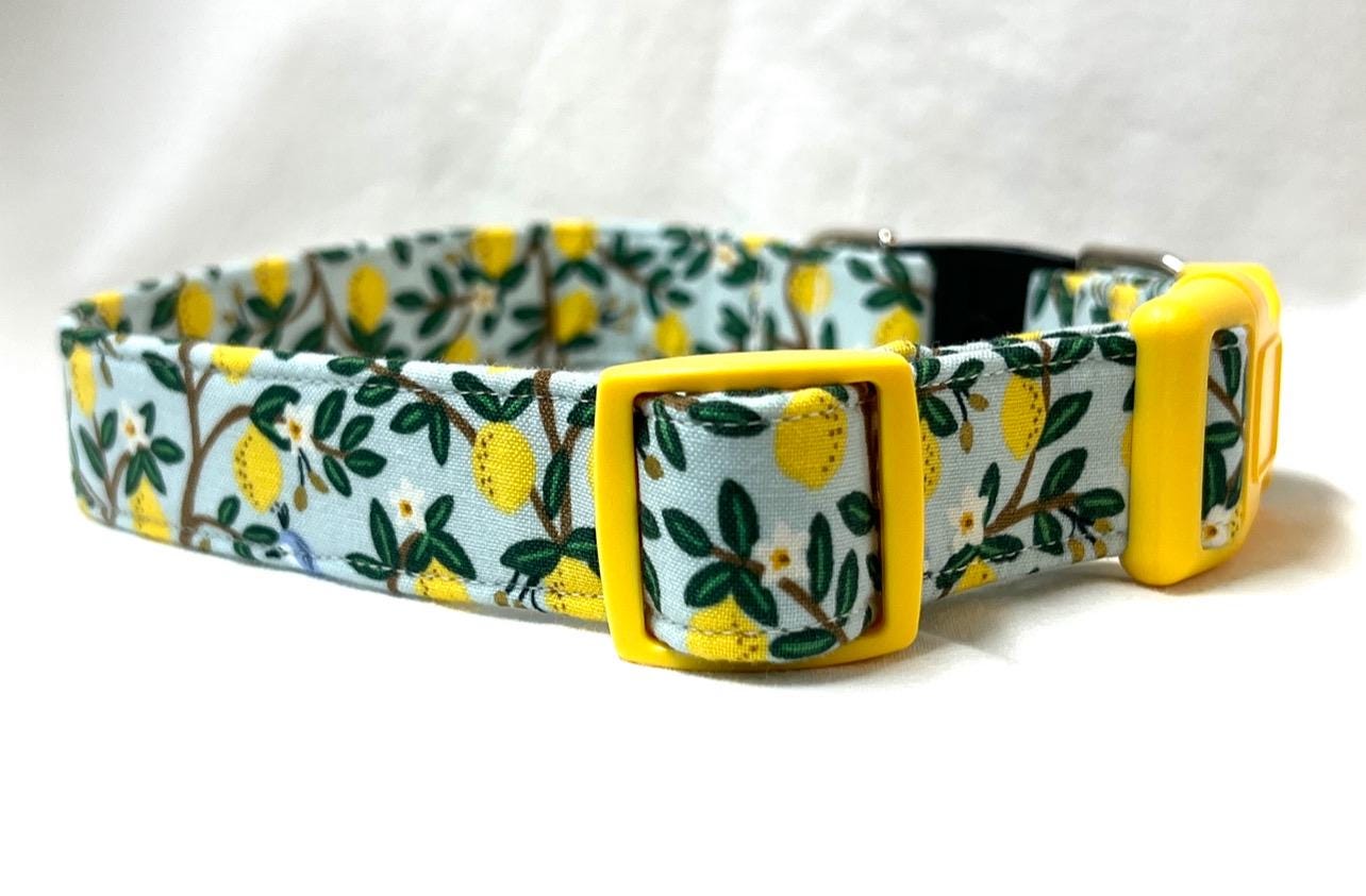 Your pup can be stylish and safe at the same time with this beautiful Rifle Paper Co Lemon Trees breakaway dog collar.