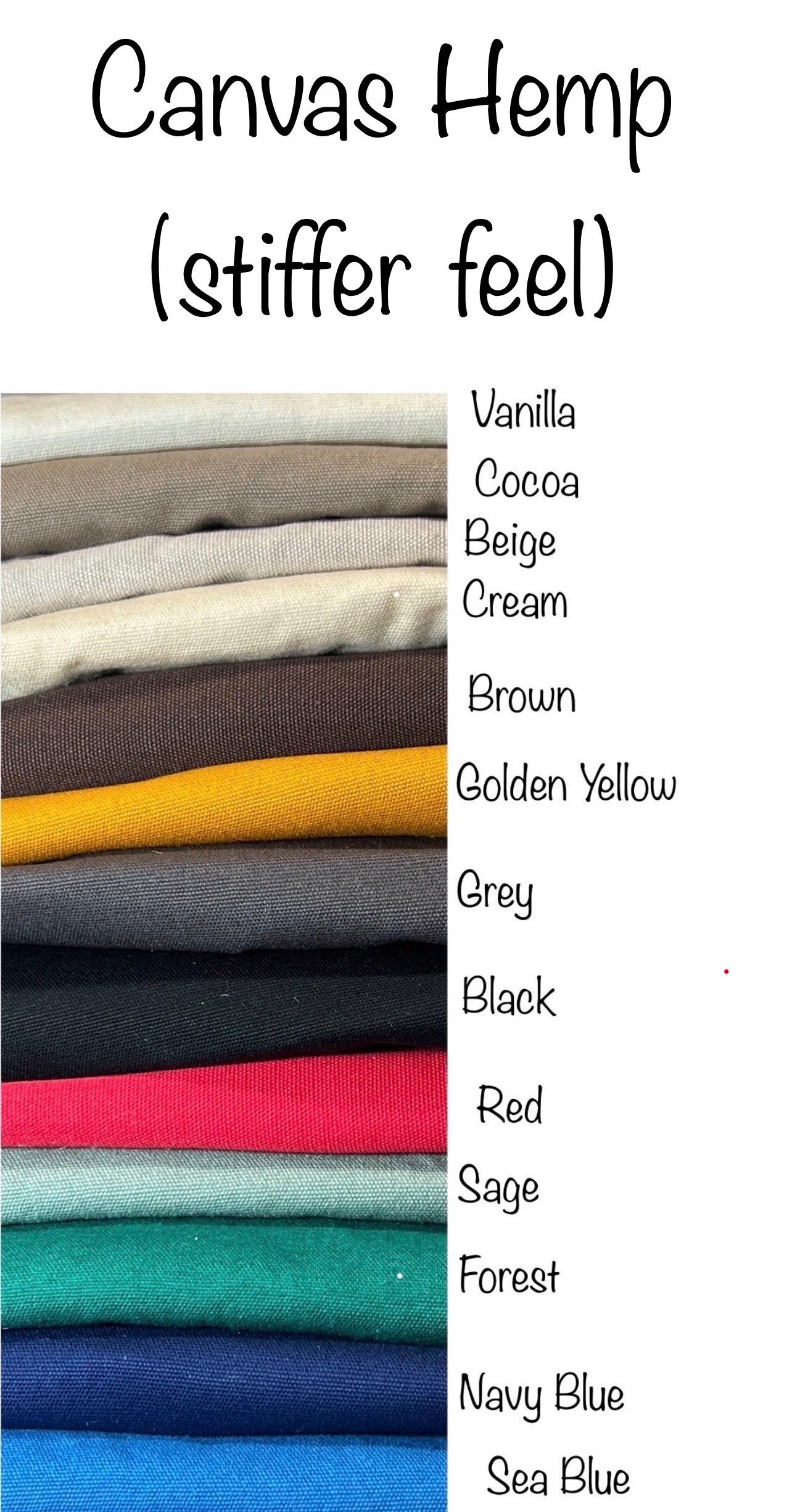 HEMP CANVAS: this is stiffer fabric and feels like a light canvas
