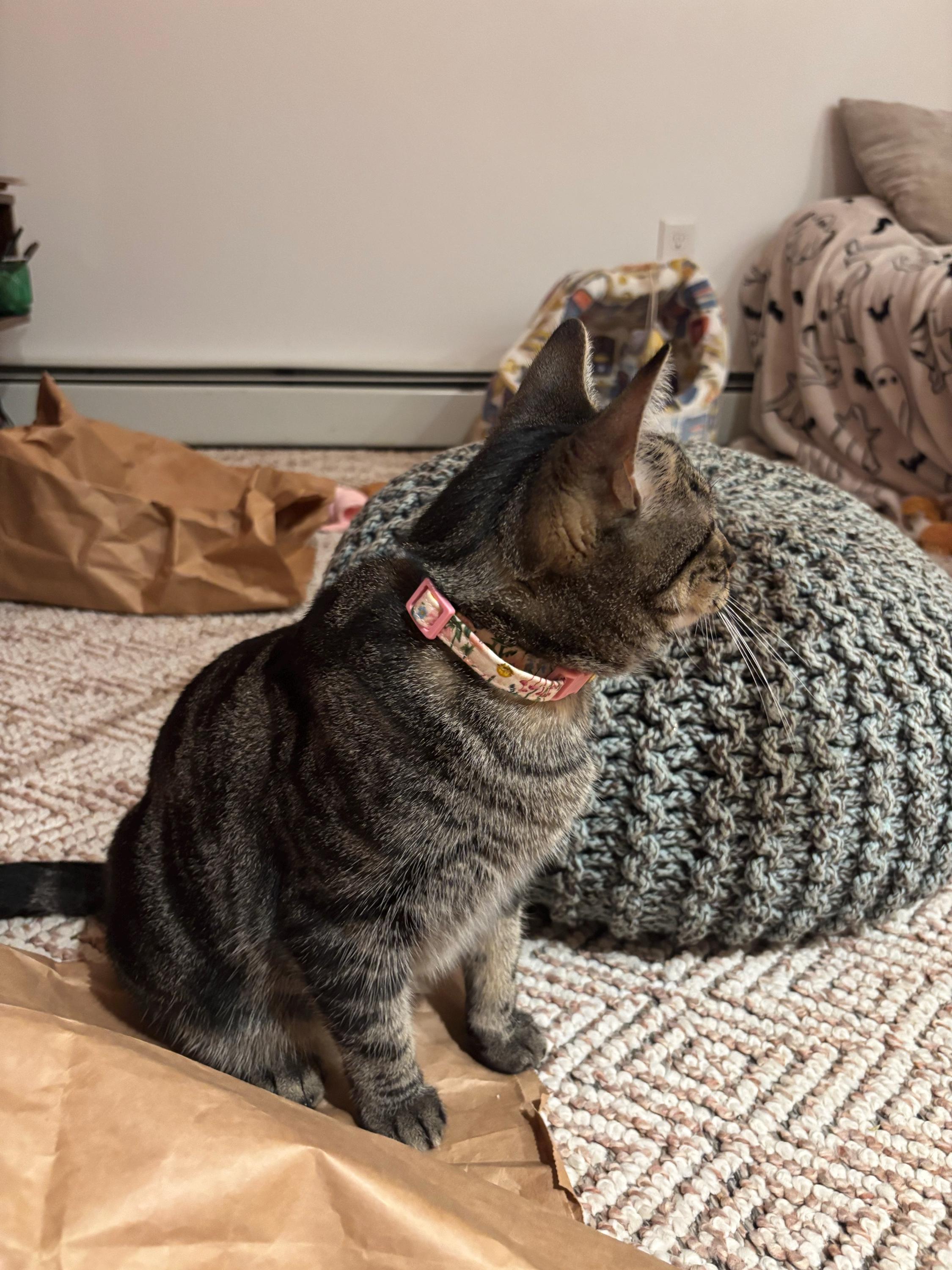 It’s so pretty!! Makes my sweet Kitty look like a princess! We got the black tag with white lettering and it stands out so well! And I love my “happy”!!!! Thank you! Highly recommended