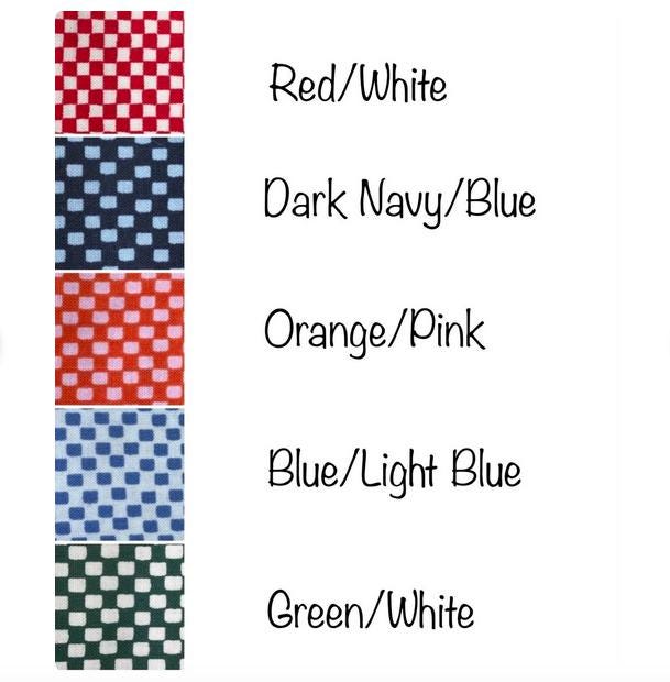 All Pinky's Pet Gear cat collars are 3/8" wide and are made with a breakaway buckle and come with a free bell!So cute! These charming kitty collars are made with modern tiny checks fabric. They would look great on boy or girl cats.