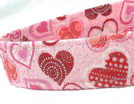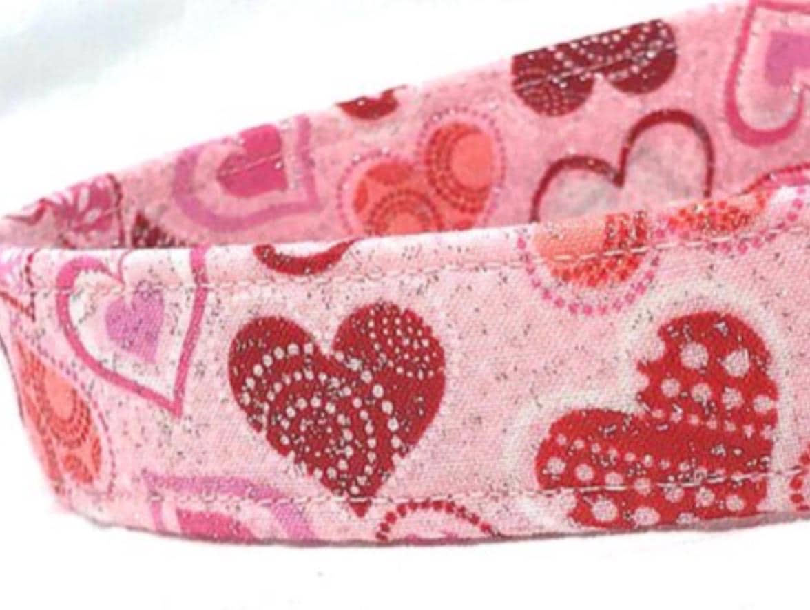 So cute!!! Show your love for your pooch with this adorable dog collar featuring glittery hearts in shades of pink and red.